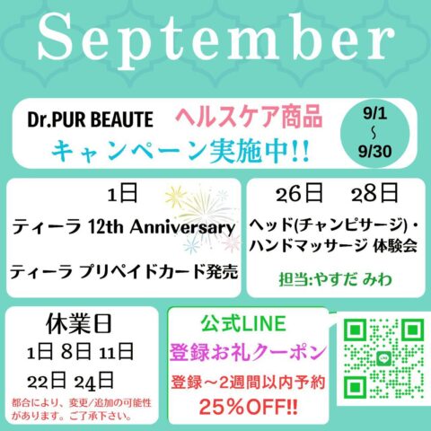 ティーラ 9月のイベントのお知らせ🎉👏